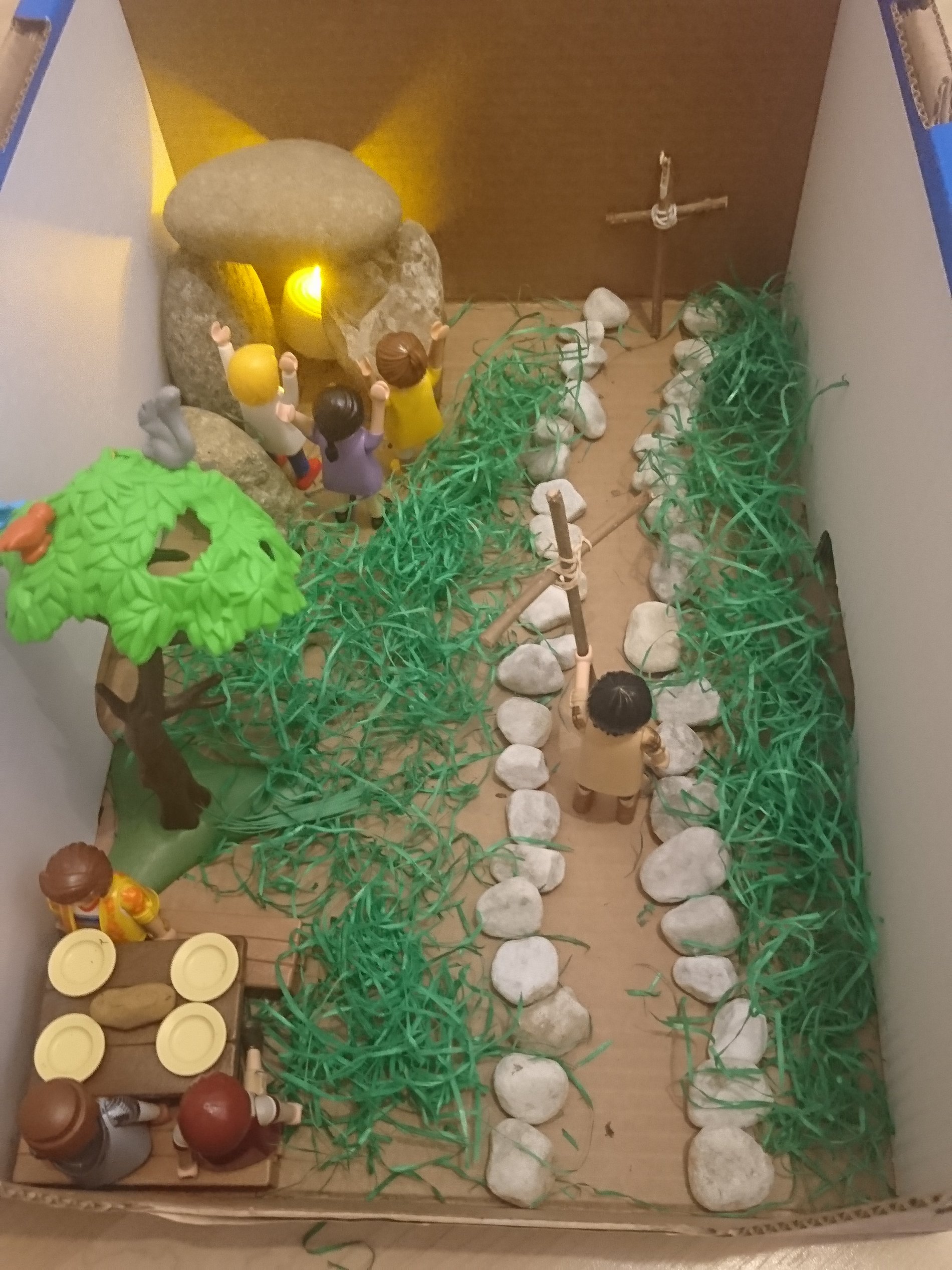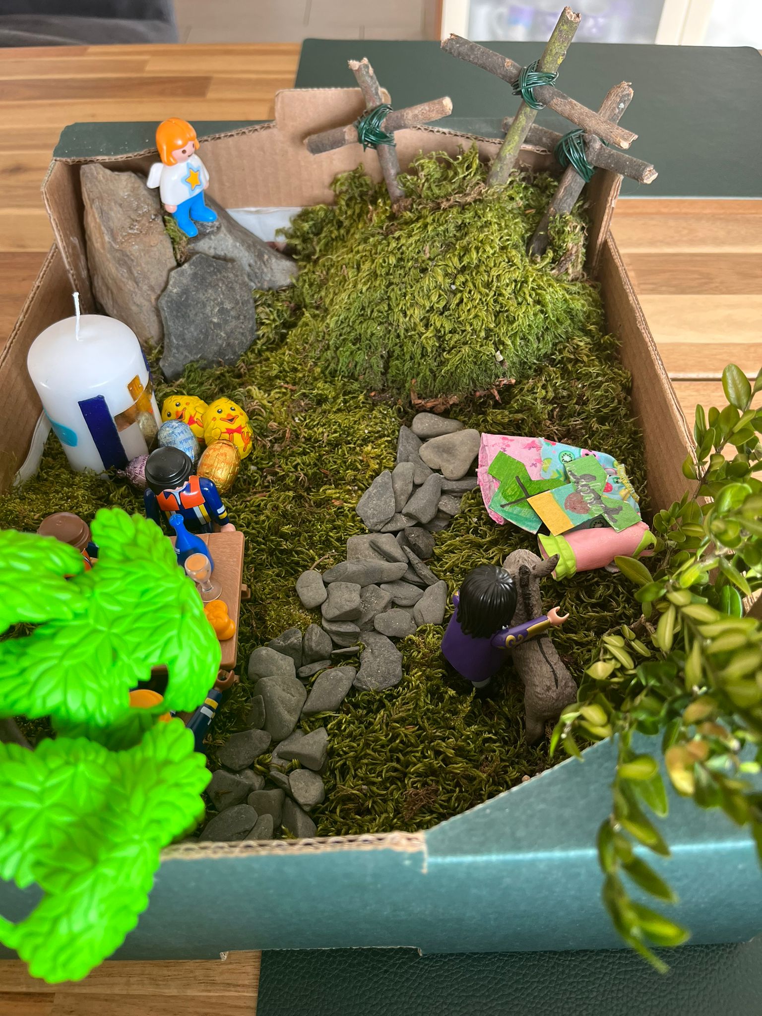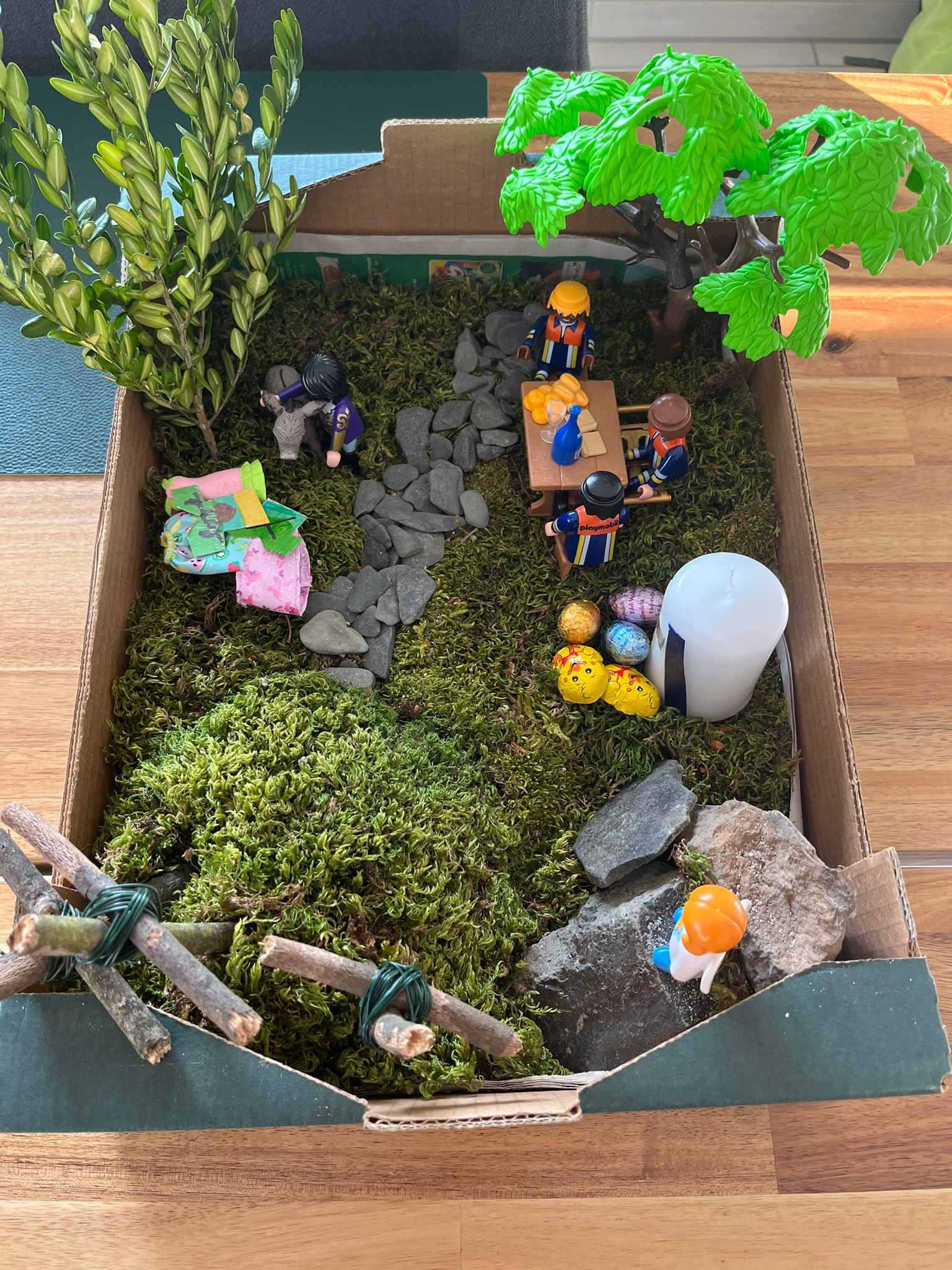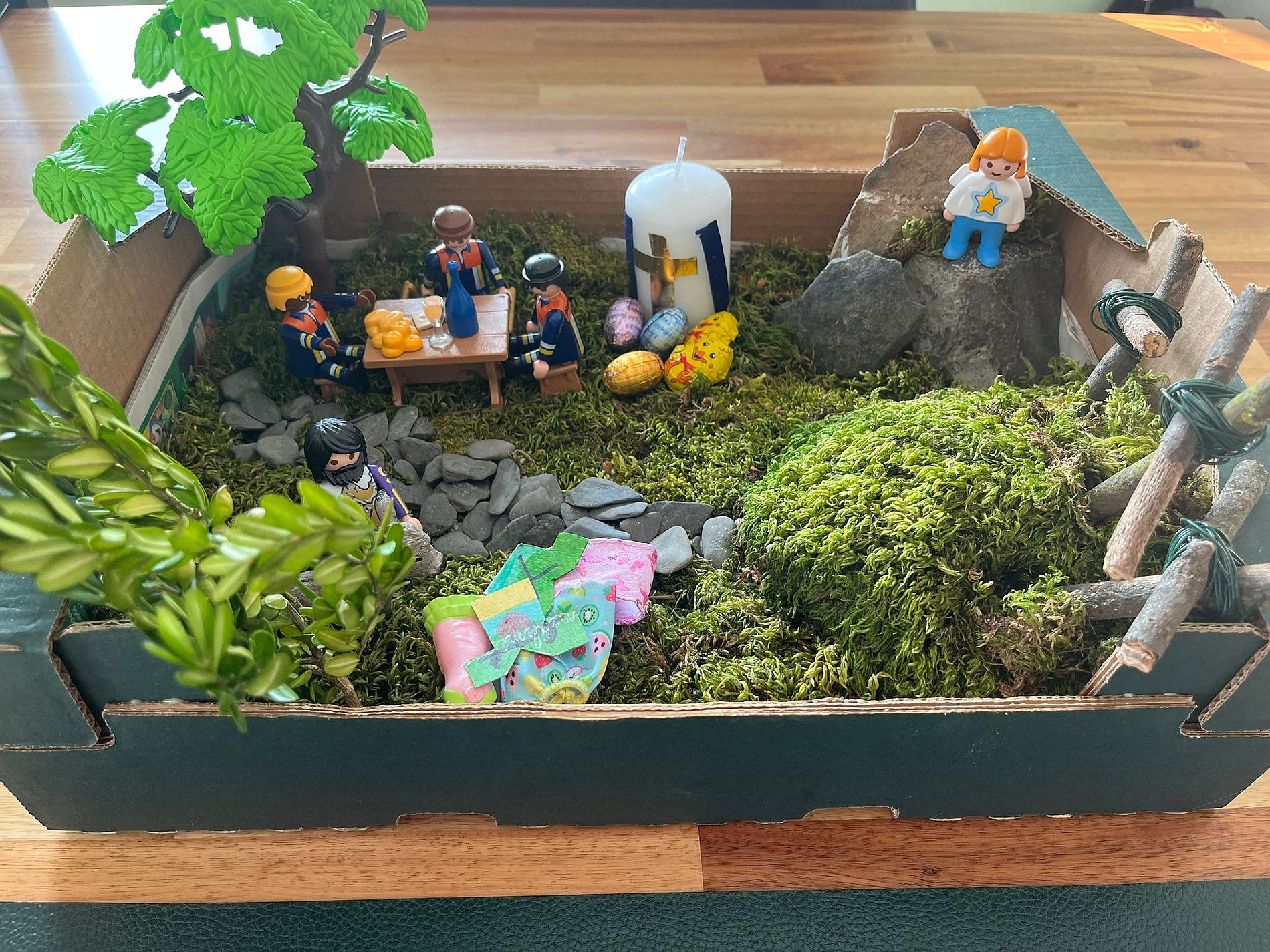 Mit viel Phantasie haben einige der Komunionkinder wirklich sehr schöne Ostergärten gebaut.